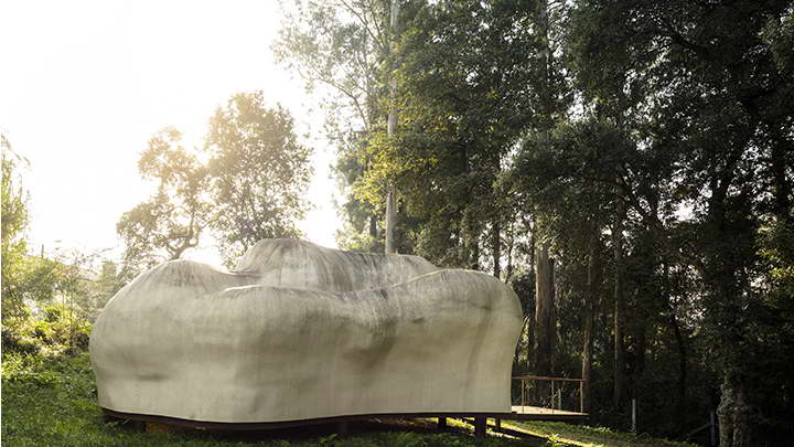 项目整个体量没有生硬的线条,几乎完全是曲线的表达,就像一只奇怪的动物在场地上出生,与周围的植被混合在一起