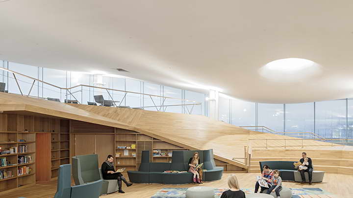 赫尔辛基中心图书馆 这个位于赫尔辛基市中心的新图书馆囊括了几乎所有种类的社会公共功能同时为大众提供丰富的公共服务项目,成为了赫尔辛基都市生活的一个高度功能集合