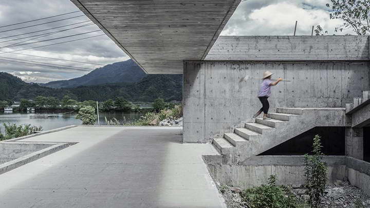 在江南典型的乡村山水环境中,通过对体量的消解、对材料的再思考,对施工的深度介入,让建筑与环境的关系呈现出一种耐人寻味的亲密关系