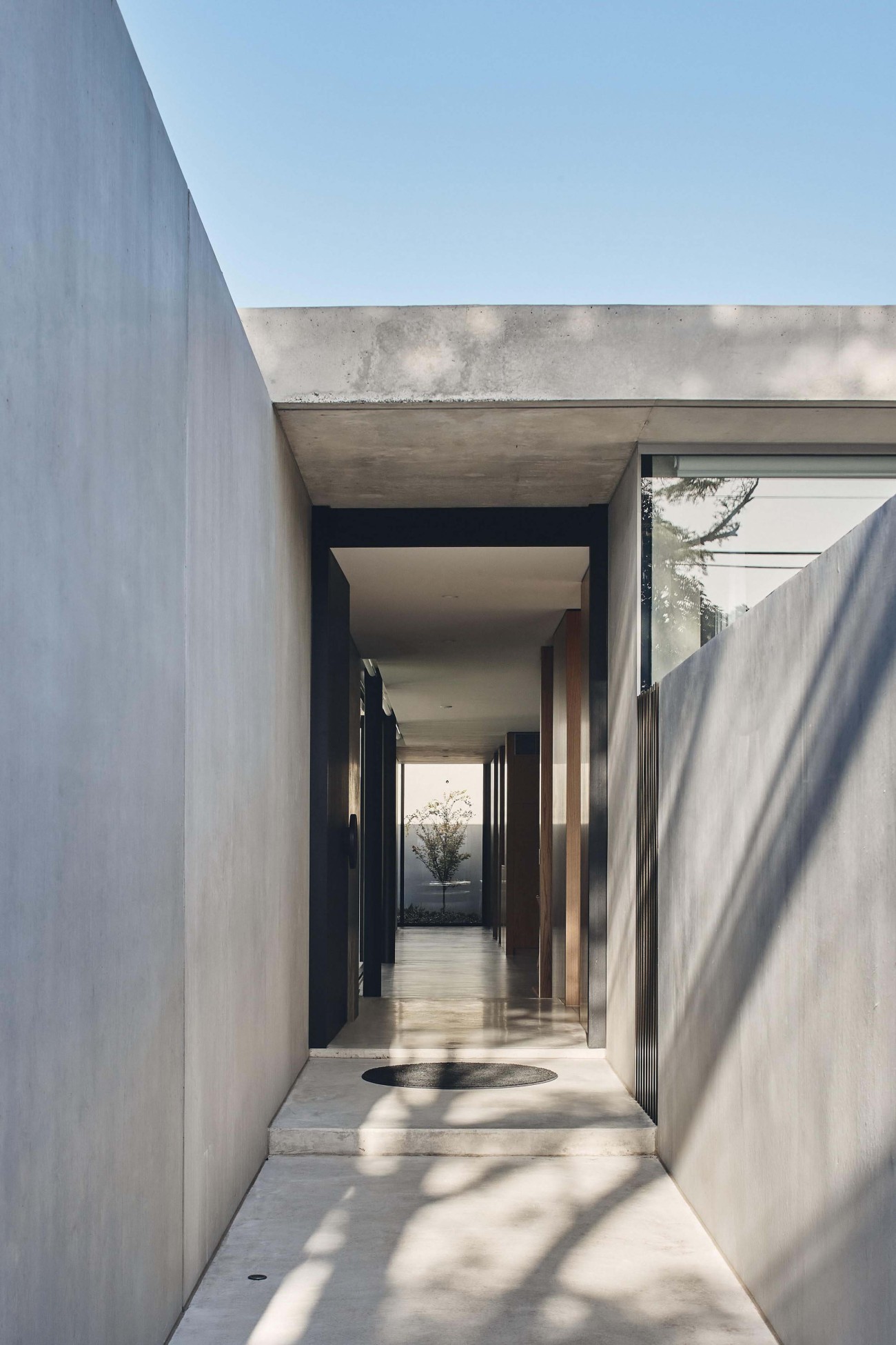 Water as wellspring is the focus of the courtyard as oasis. Reflection and delight are contrasted by the monumental energy of matte and polished concrete. Muted surfaces celebrate a sophisticated rawness throughout supported by the evolving dance of light, shadow and reflection.