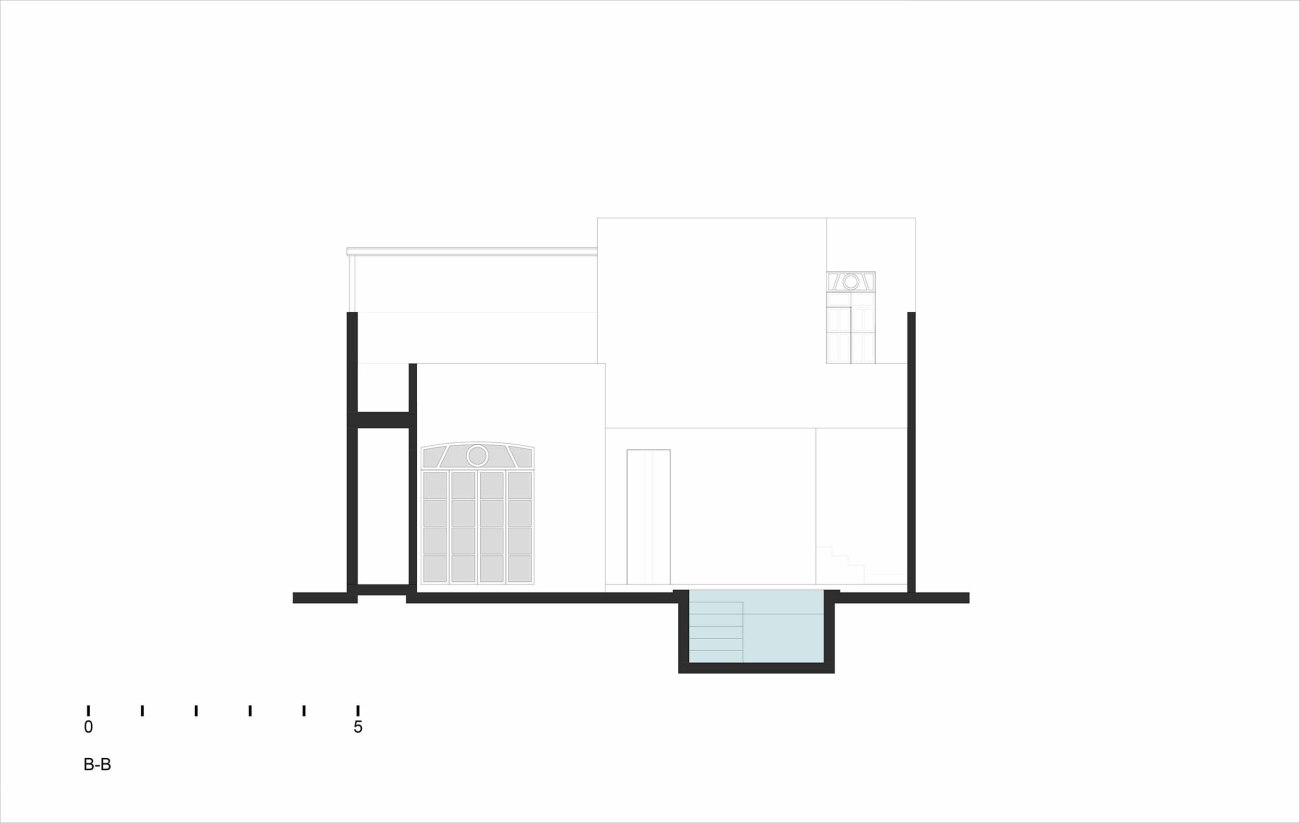 第二条走廊中包含一间卧室和餐厅,餐厅的使用者将享受双高天花板带来的宽敞空间,起初天花板下藏有一个阁楼空间,团队在设计时决心拆除,以最大限度地提高空间的使用感。然而,作为原始设计一部分的门窗被留下了,成为了空间起源的有形见证。