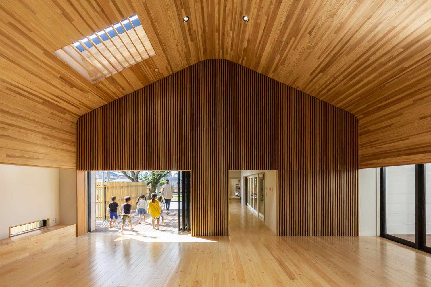 园儿们能接触到的材料广泛使用了宫崎县产的杉木和柏木,即使是材料也注重和当地的连接。着手于现有的问题,通过区分活动身体的空间以及饮食空间,孩子们能够在不同空间中有意识地进行活动学习。
