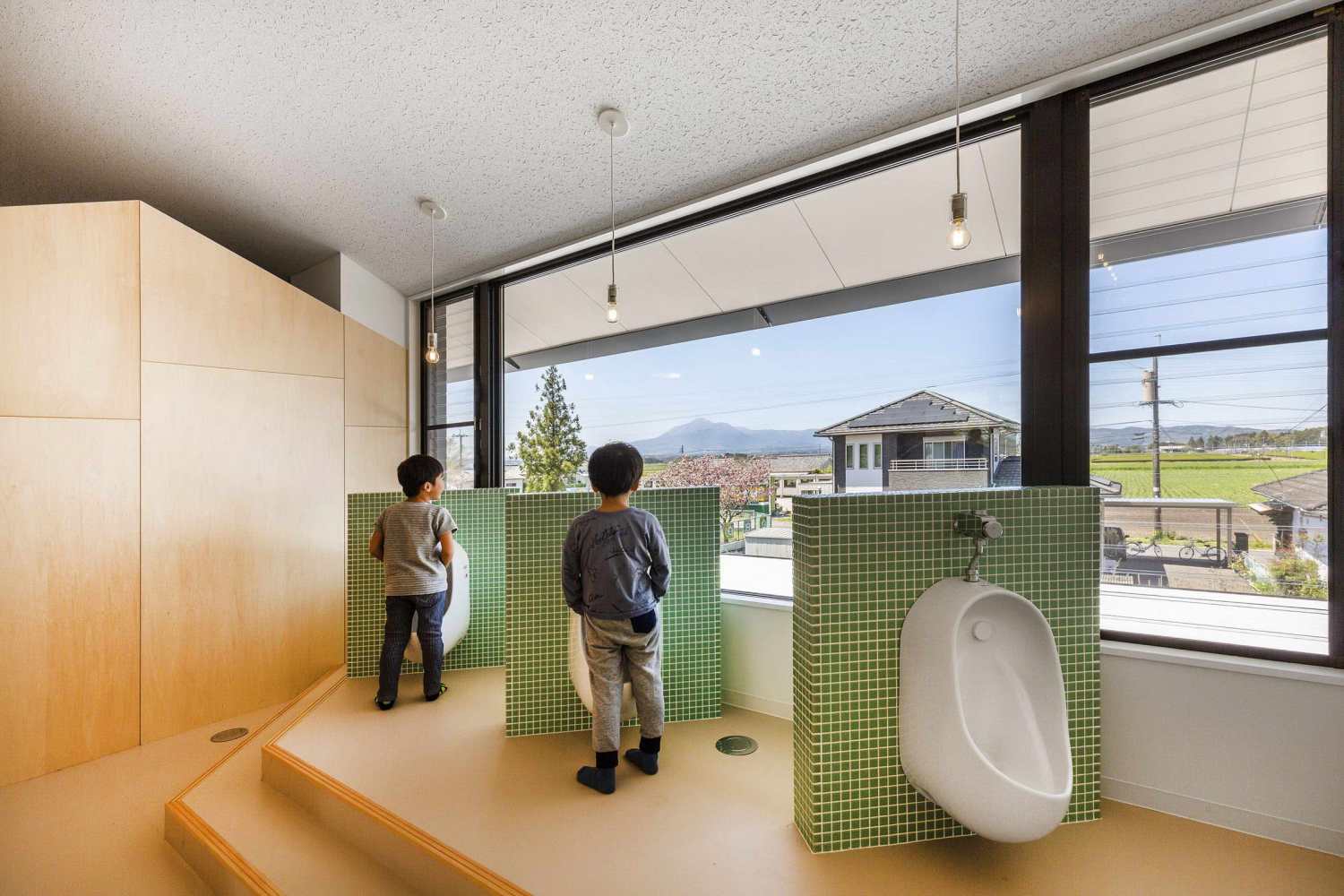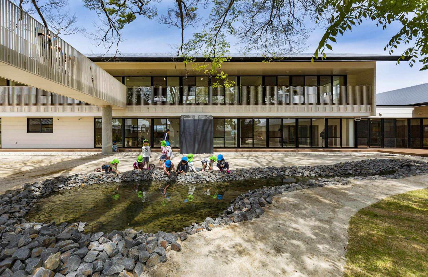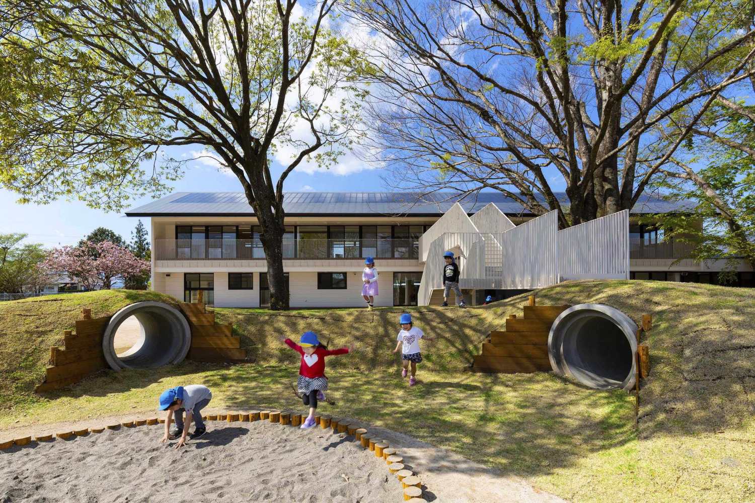 It’s an architecture project of a Kindergarten cum Nursery, situated amidst the rural fields on the foothills of Mt. Kirishima in Miyakonojo, Miyazaki, Japan. It often happened that the very same children who once studied here, came back with their own children even after so many years. It has become an institution that’s firmly rooted in the minds of the locals. Taking inspiration from this cycle, the design theme was set as “Connection”.