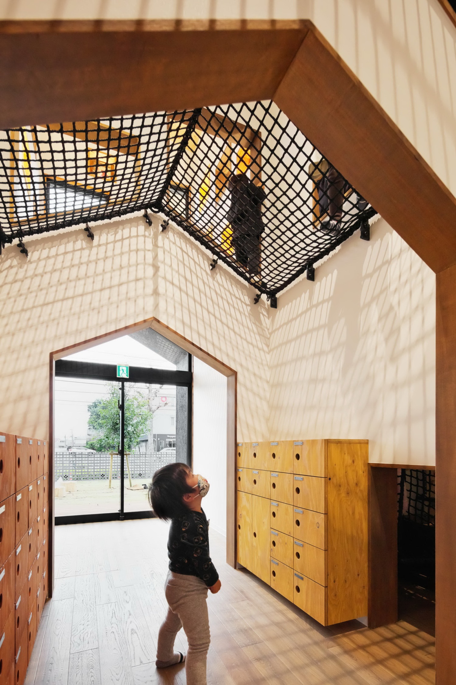 This is a facility newly built for 40 children who are from 1 years old to 2 years old in Maebashi, Gunma, with the concept ‘Feel the change of seasons’. Maebashi city is located at the foot of Mt. Akagi and the weather changes a lot depending on seasons. For examples, in winter they have a strong and cold wind from Mt Akagi, called ‘Akagi Oroshi’ and they feel the change of seasons very well.