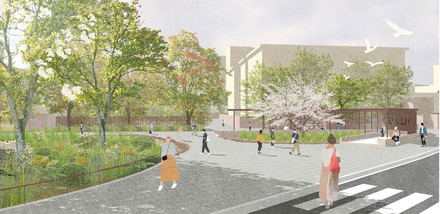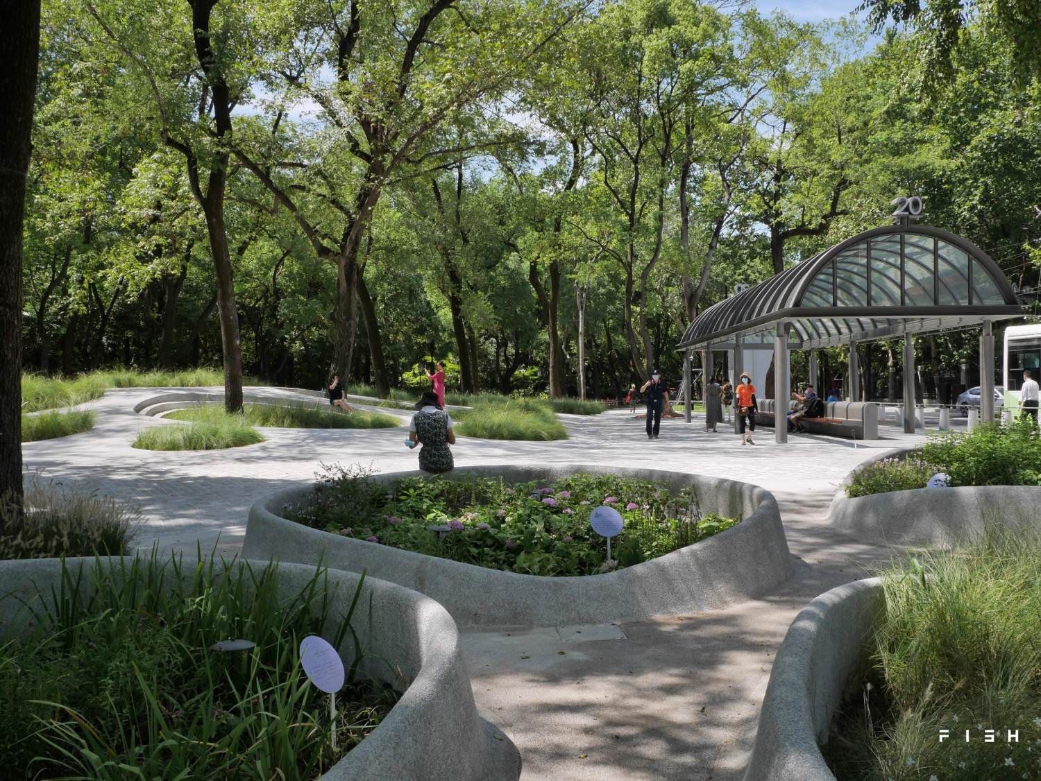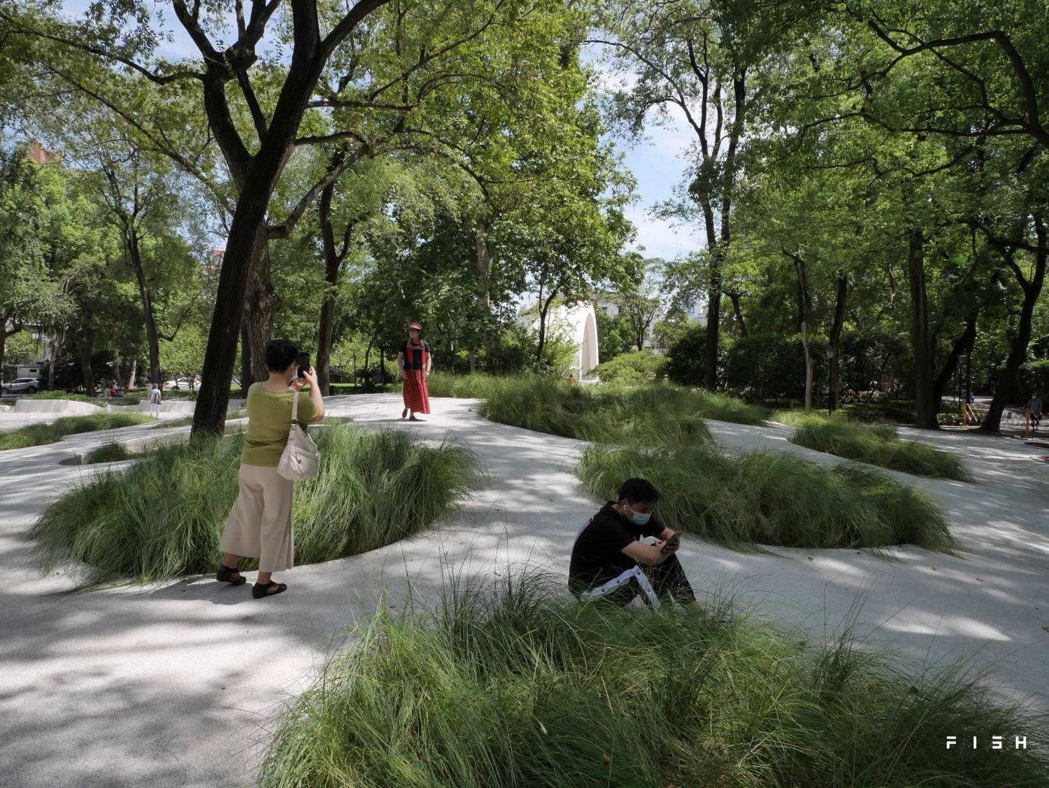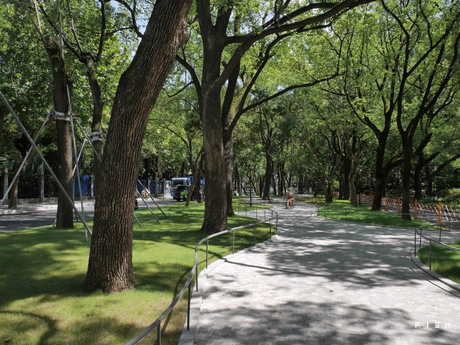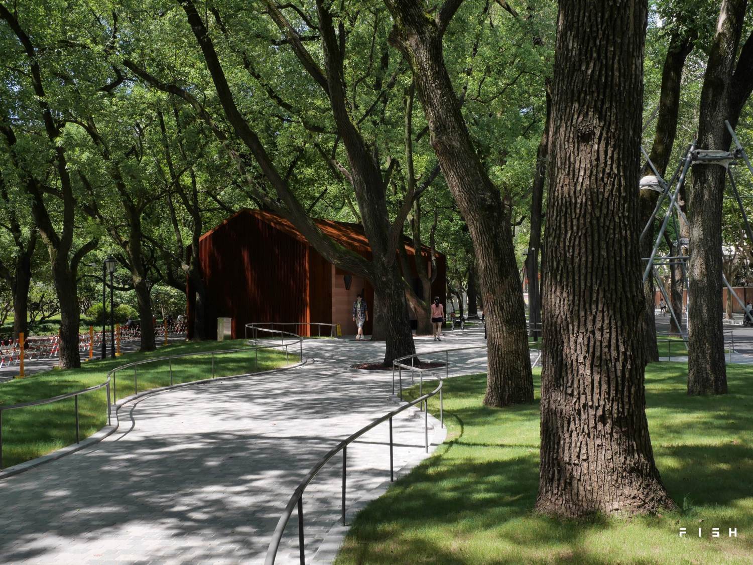 ⊙拆除万航渡路全线围墙,将原本隐藏在内部的景观空间释放出来。打开场地通透性,避免视线遮挡。将中山公园与整个街区融为一体,市民更能体验到公园城市的惬意与从容。