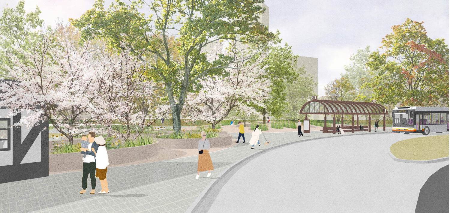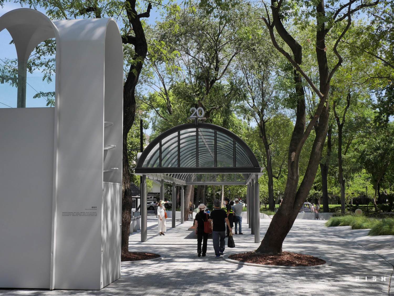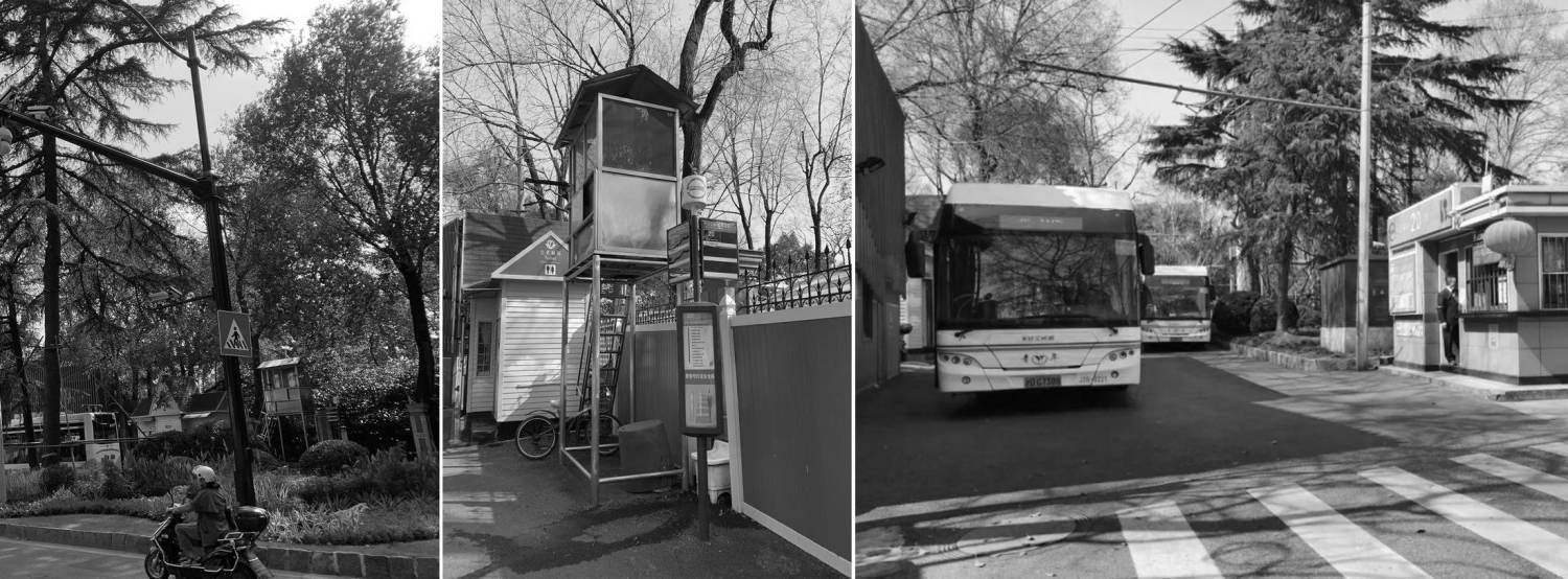2号门围墙外是20路公交电车的始发站,围墙打开后,我们面临的另一个挑战是如何将公交车站与开放广场完美整合起来。在对英式公交设施、建筑进行深入研究后,我们决定为20路电车设计一处独特的候车空间。