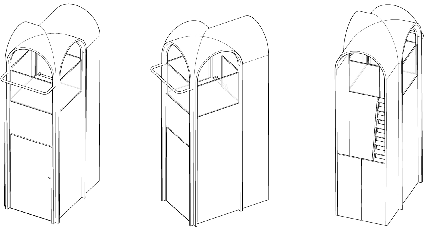 “煤精亭”是有线电车特有的附属设施,工作人员需要定期登上亭子更换电线润滑材料,我们将拱廊穿插叠加形成一处英式塔楼,使其在满足日常使用功能同时成为百年公交独特的人文景观。