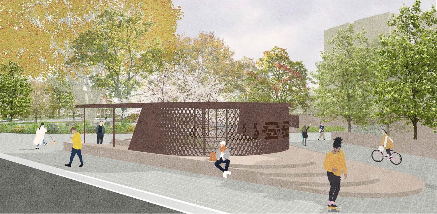 2号门改造我们面临的第一个挑战是如何与对面的华东政法大学形成联动,让这里成为年轻人展现自己的舞台,为百年公园注入全新的活力。我们联想到了“种子”—一个古老英式公园中萌发出来的种子花园。