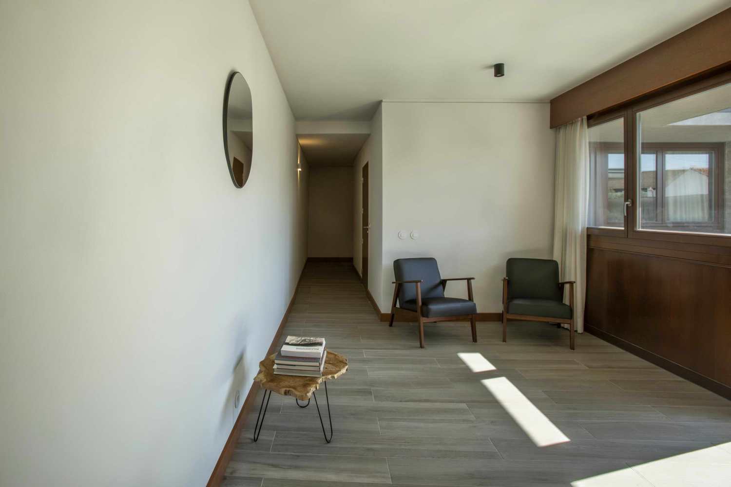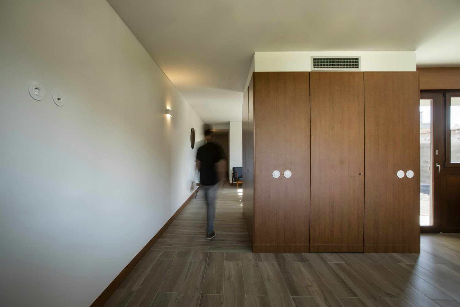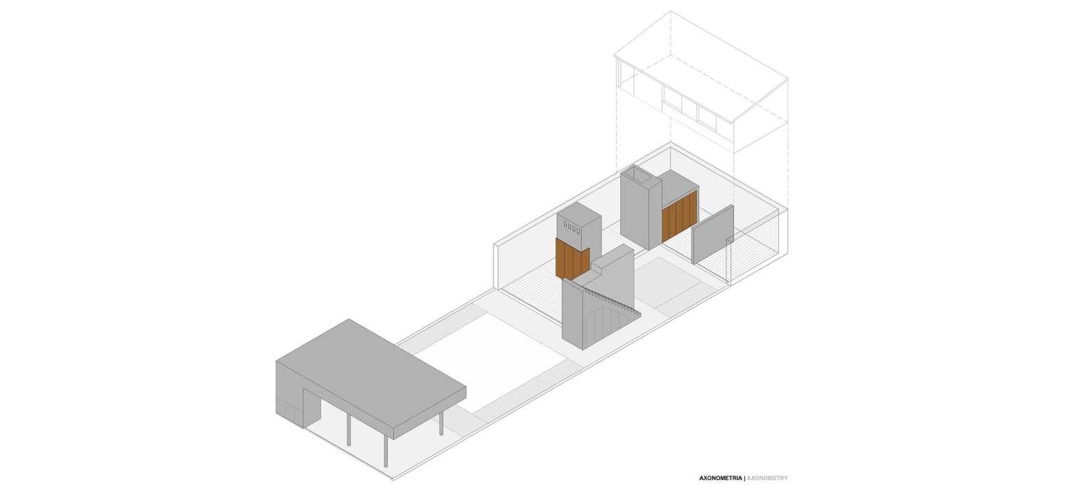 The project started from a small two storey building located at the end of a narrow and deep lot, integrated in an uncharacterized urban area of the city. It was from this context that the spatial organization of the house was developed, being defined by 3 concrete volumes strategically positioned from the existing volumetry, creating a patio and taking advantage of the interiority resulting from this disposition. These volumes, which concentrate all the support areas of the house, define, among themselves, the main living areas of the house.