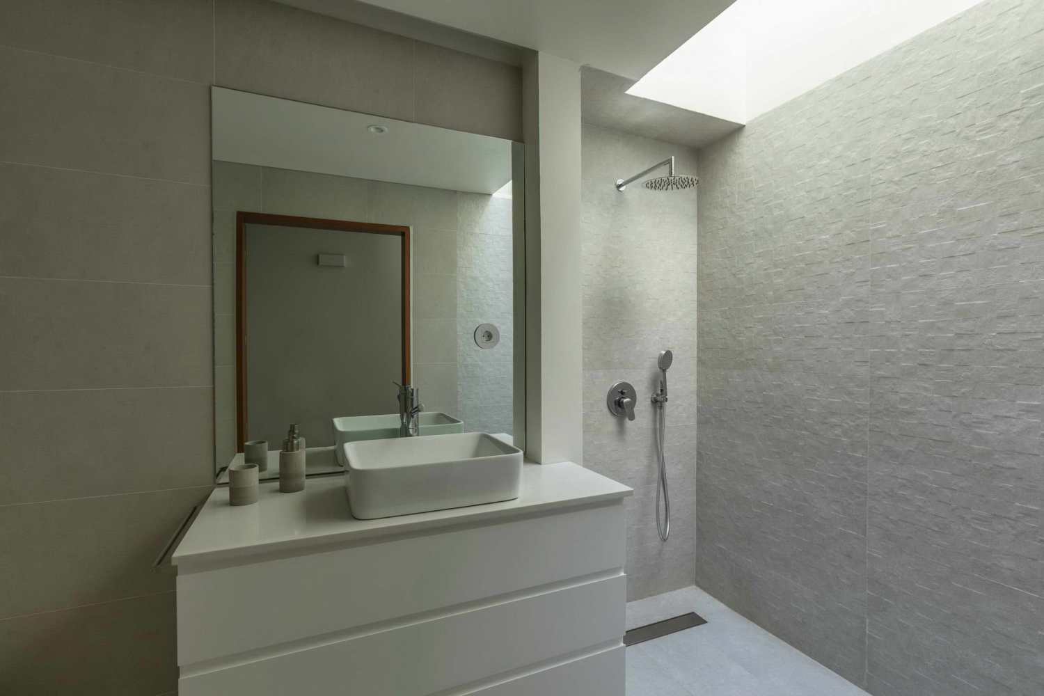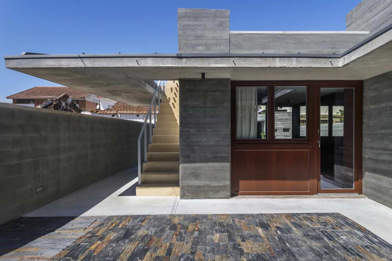 The sequence of spaces organized around the patio follows an increasing gradation of the relation between inner and outer space, depending on the transition amid the private and social spaces of the house. This “filter” is based on a modular design of the wooden frames that connects the concrete volumes configuring the image of the house.