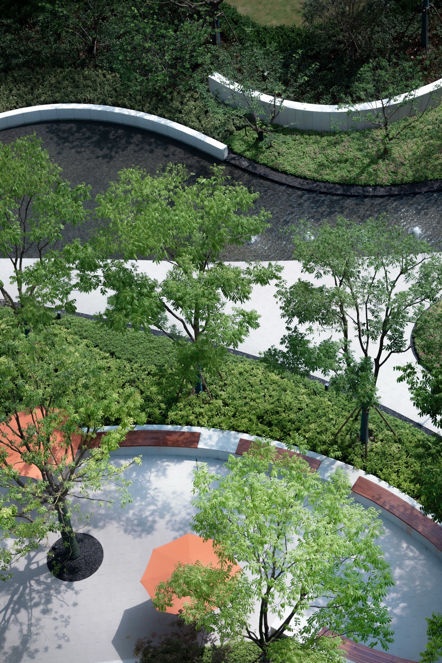置身于绿色生态的自然空间之中,一汪春水、一席微风、一抹绿荫,都能舒缓水泥城市的喧嚣。但社区不仅是大自然的映射,更是传达着一种温暖的人际关系,营造参与邻里的活力氛围,宛如流水,时而逐流,时而汇集,是自由、轻松的空气,让人能恣意呼吸。当流水汤汤的诗情画意点缀了四时晨昏,一切的美好就这么荡漾开去。