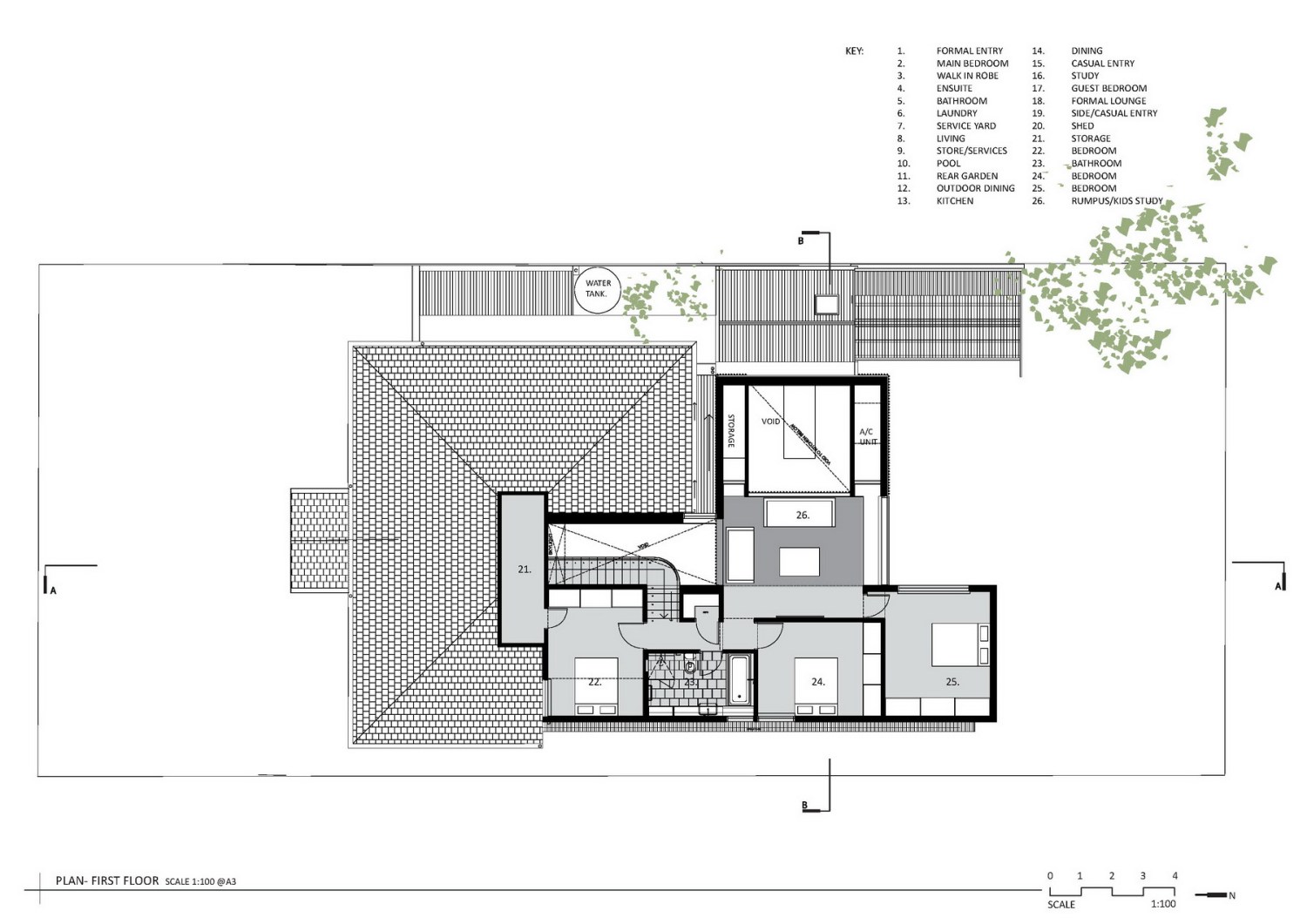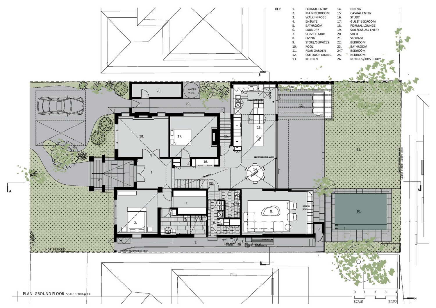 Maintaining the traditional smaller room layout provides significant financial and sustainable benefits, whilst creating a functional solution for housing 3 young children. Subtle links are created vertically, horizontally and to surrounding landscape, establishing connection and surveillance, whilst minimising impact on each other.