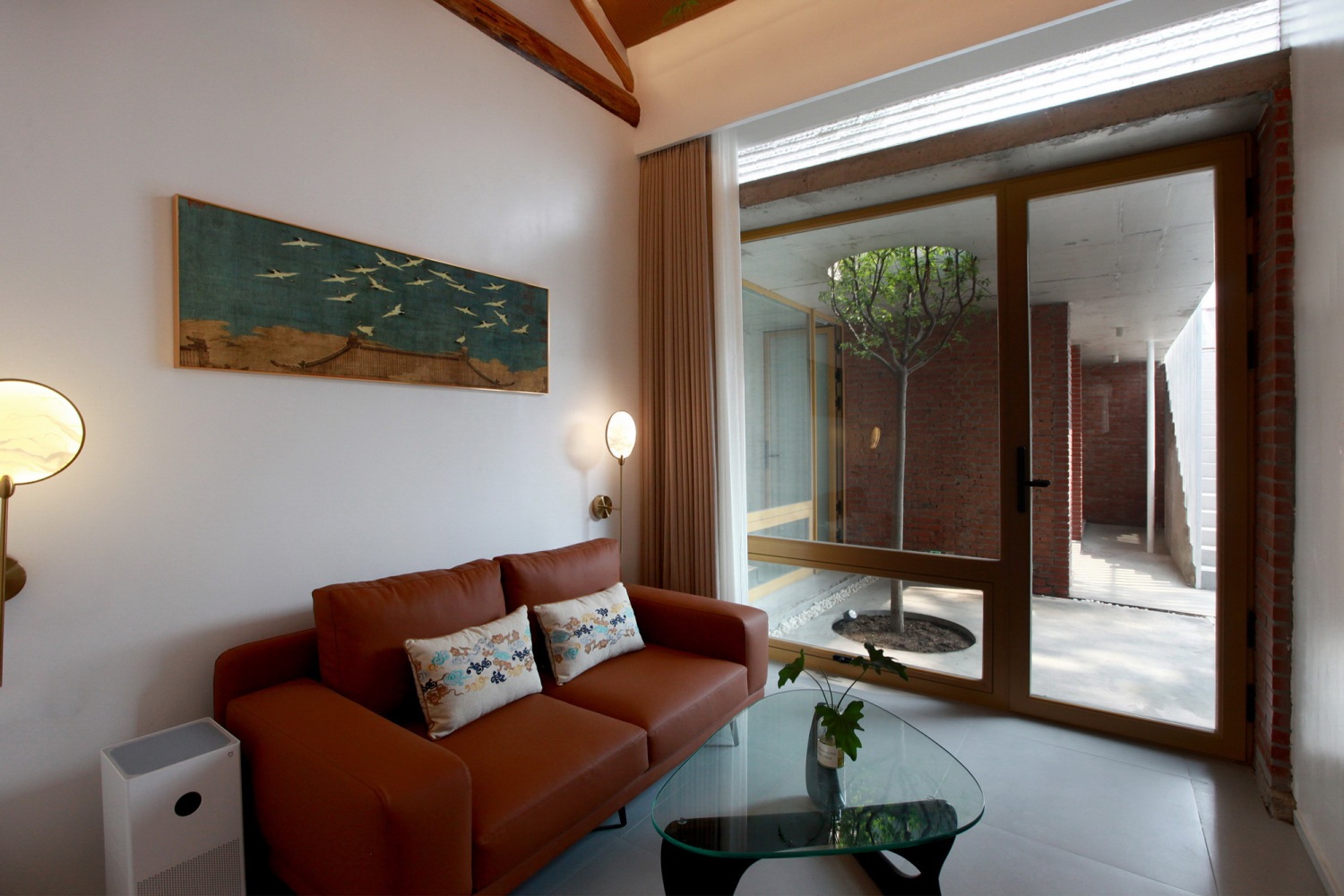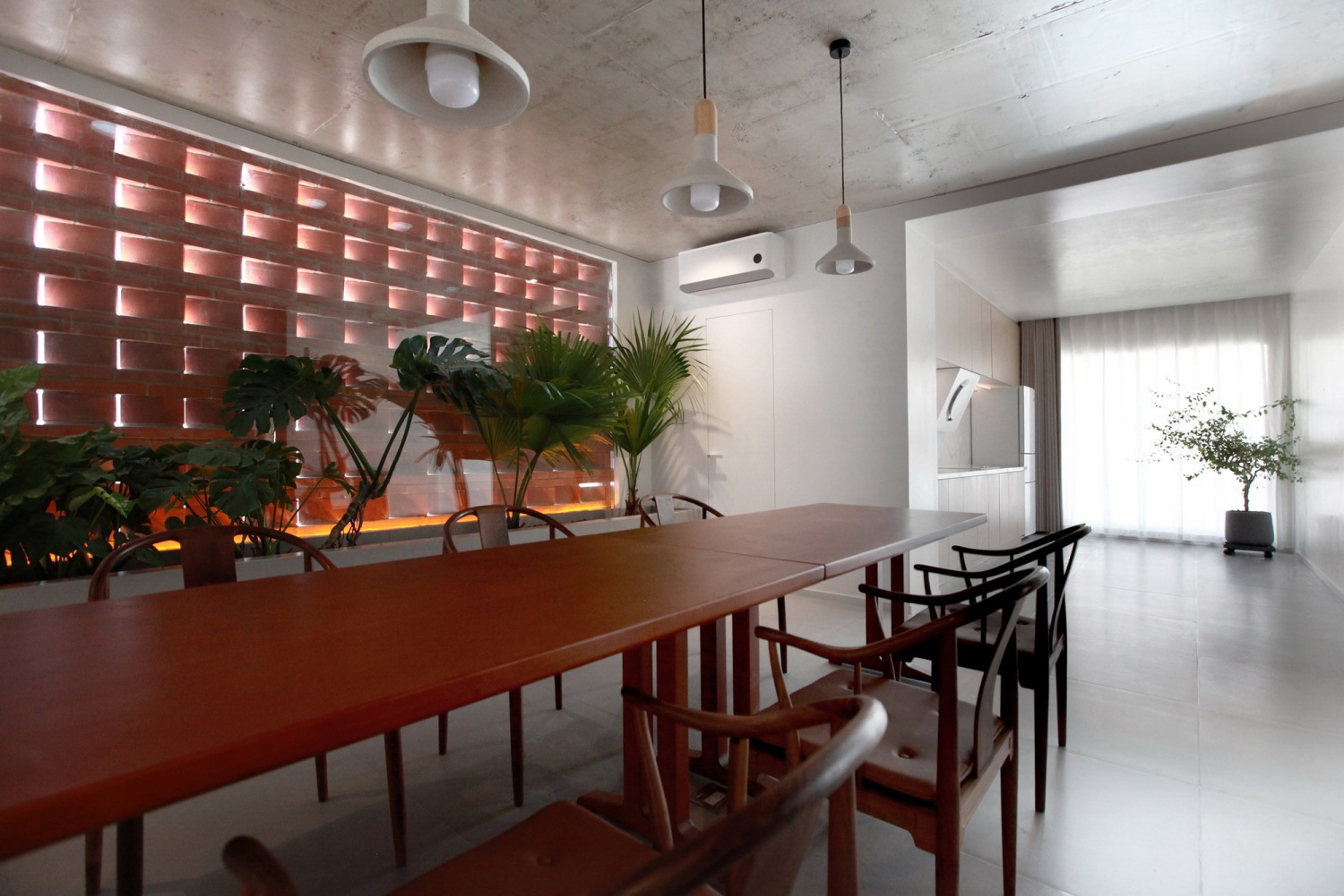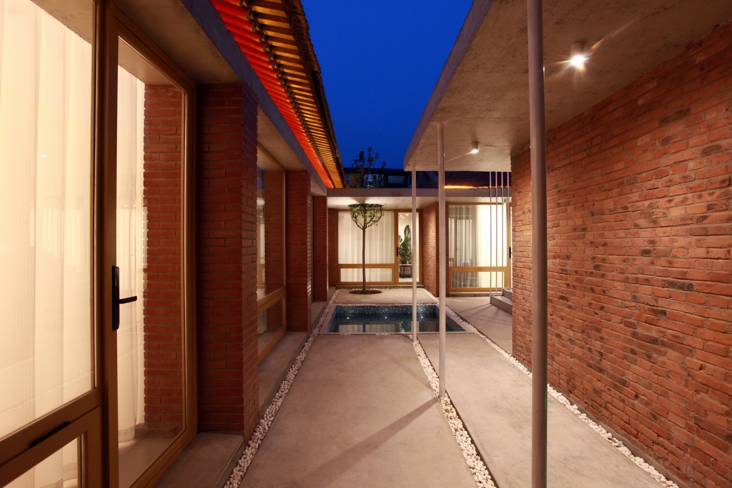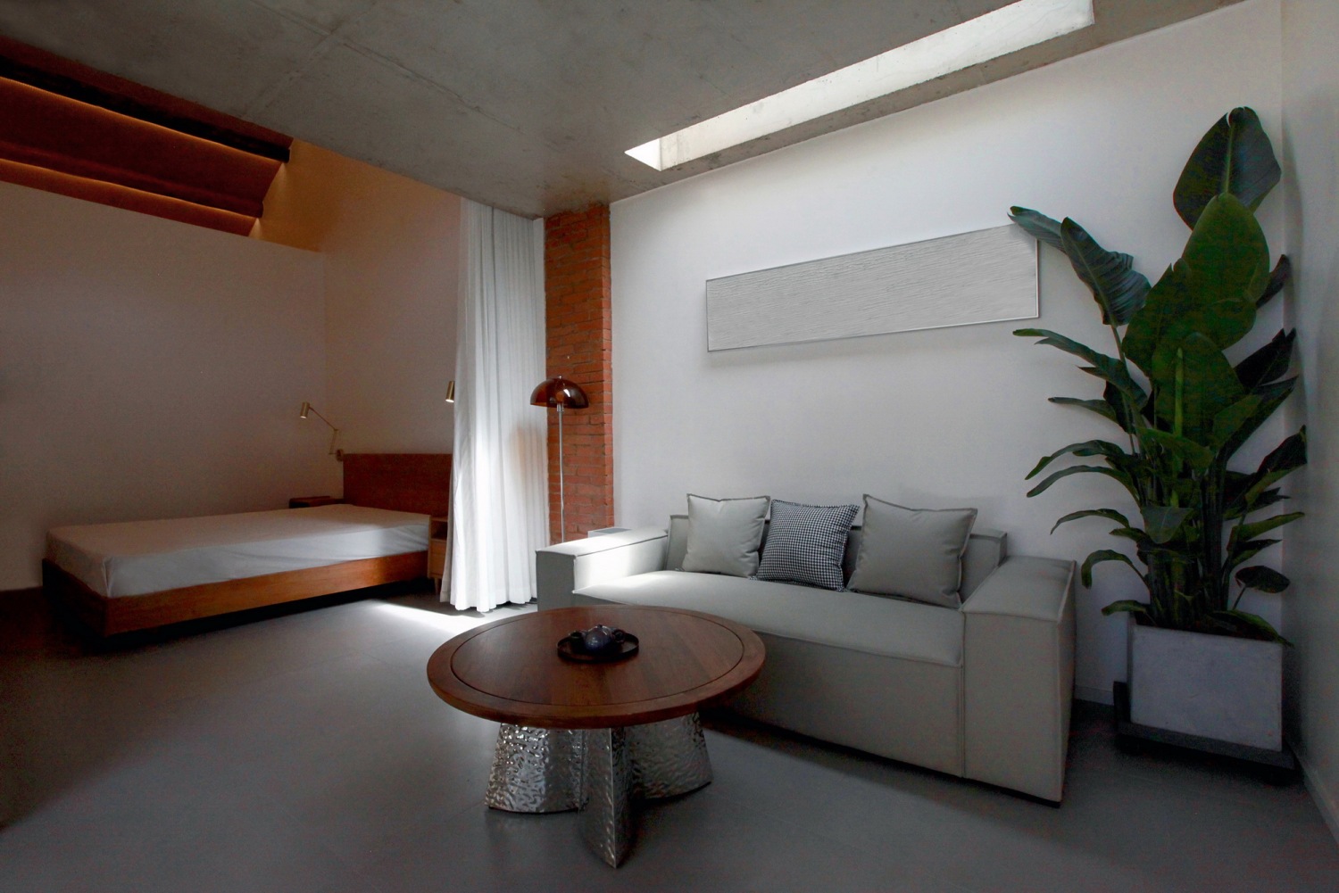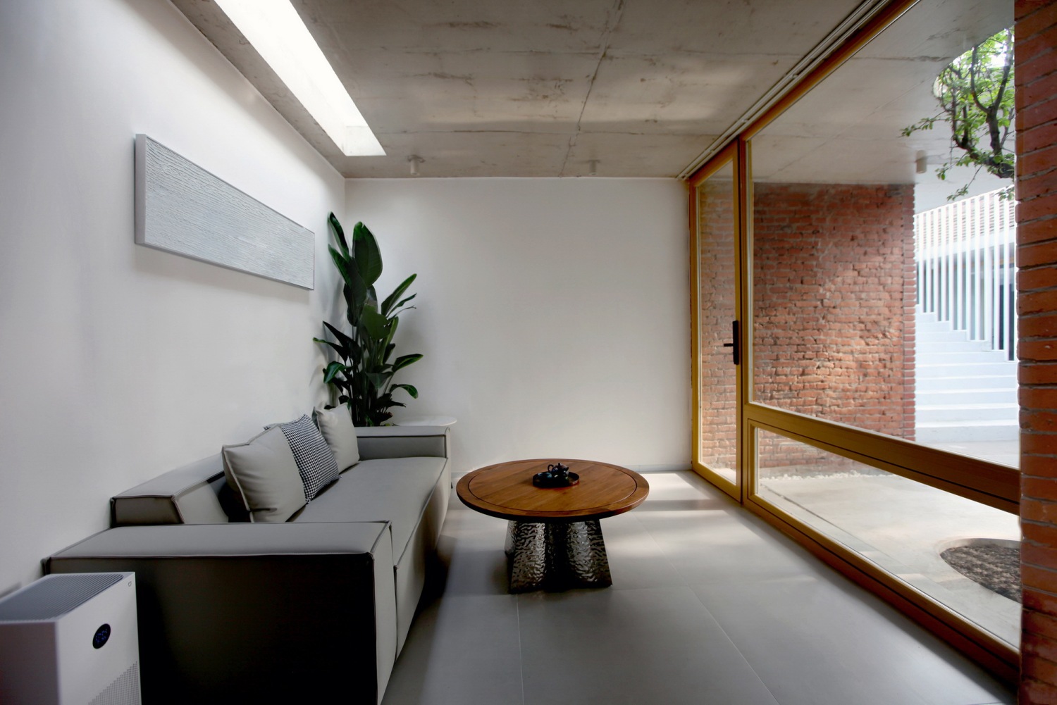 材料:混凝土、红砖、方钢、橡木饰面板、玻璃