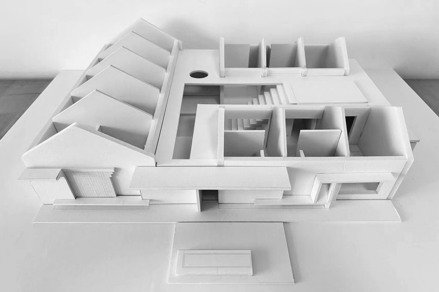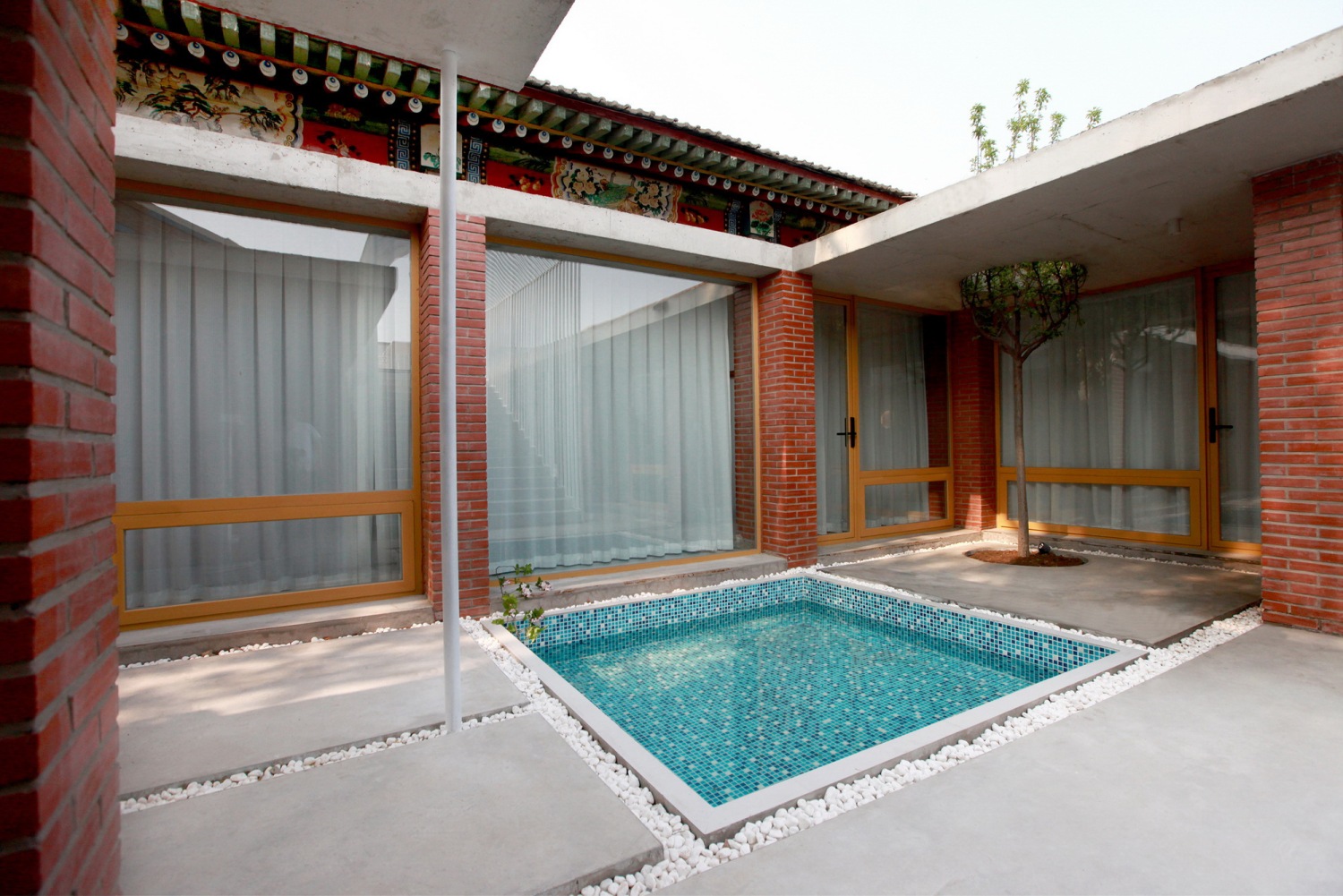 The original building area of square and wing rooms is retained, and the eaves of all rooms are extended by concrete to connect the interior and exterior space of the whole building.