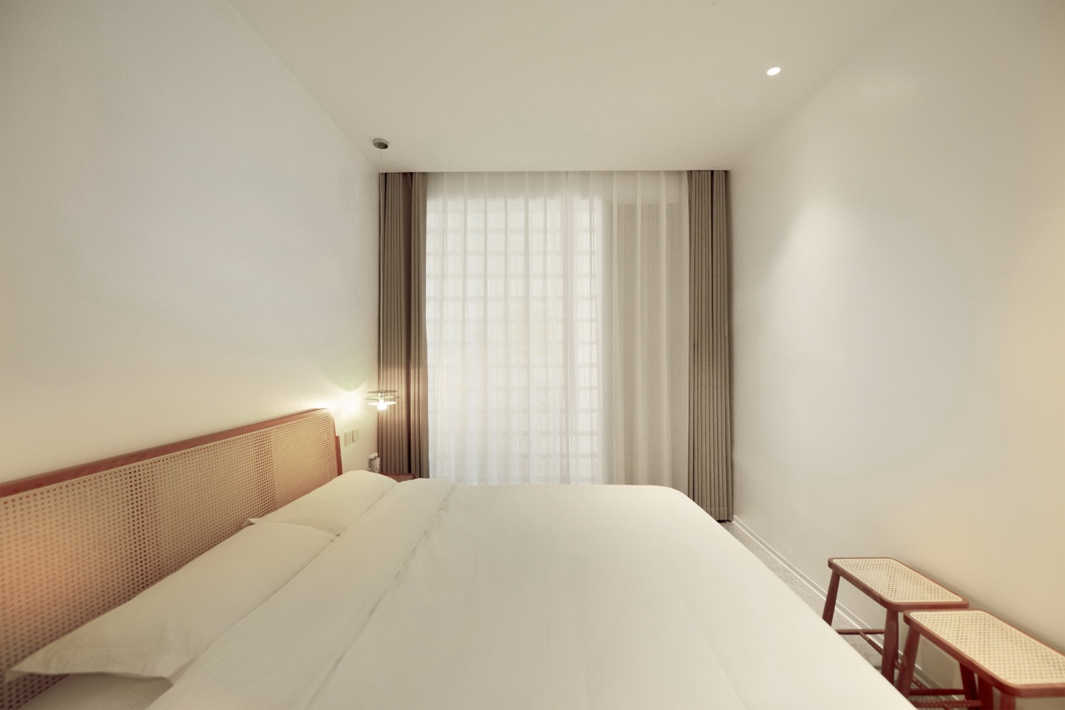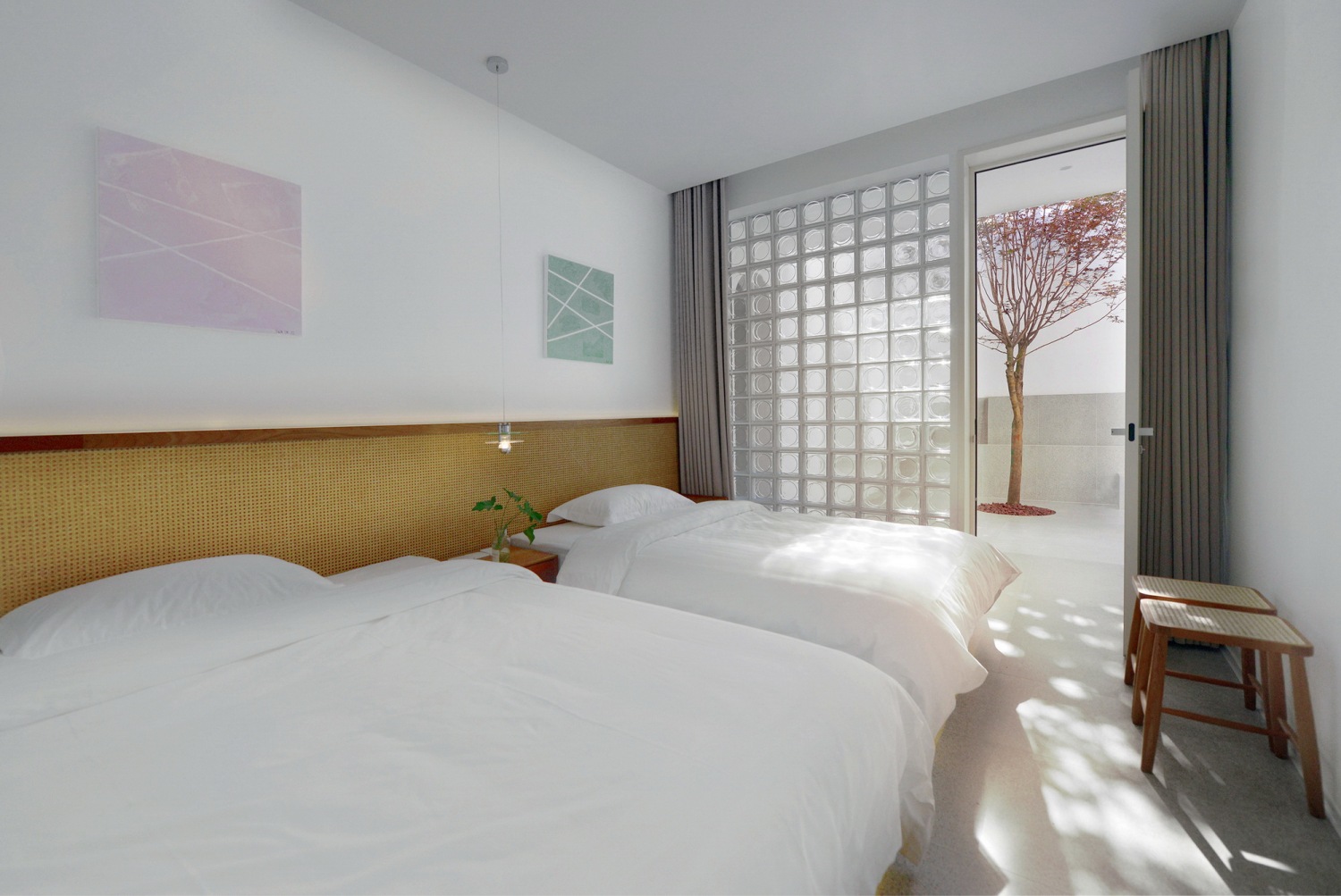 The overall renovation of the building is divided into two parts: public space and accommodation area. Considering the dynamic and static management of the two, a flow line that can directly reach the guest rooms is planned at the entrance of the building, making the two independent and interconnected.As a public space along the street of the village, the bar in this area becomes a part of the community function.