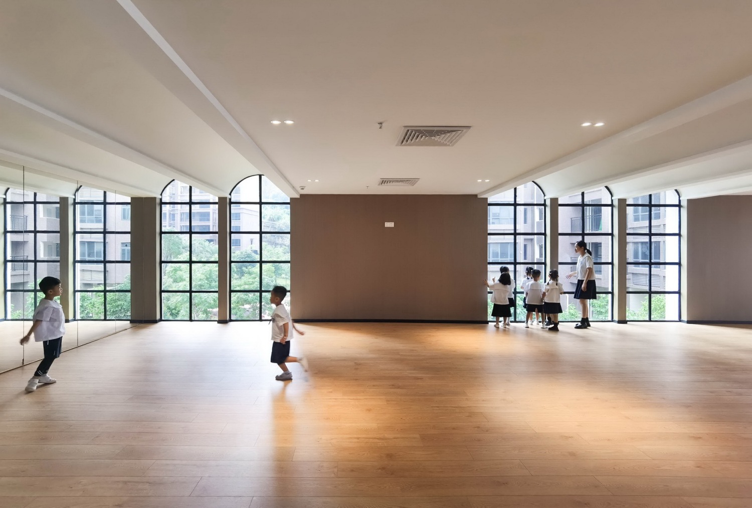 此外,为了引起孩子对饮食的关心和兴趣,设计考虑了与自然花园连为一体的餐厅,舒适的用餐空间还能促进良好的用餐习惯。