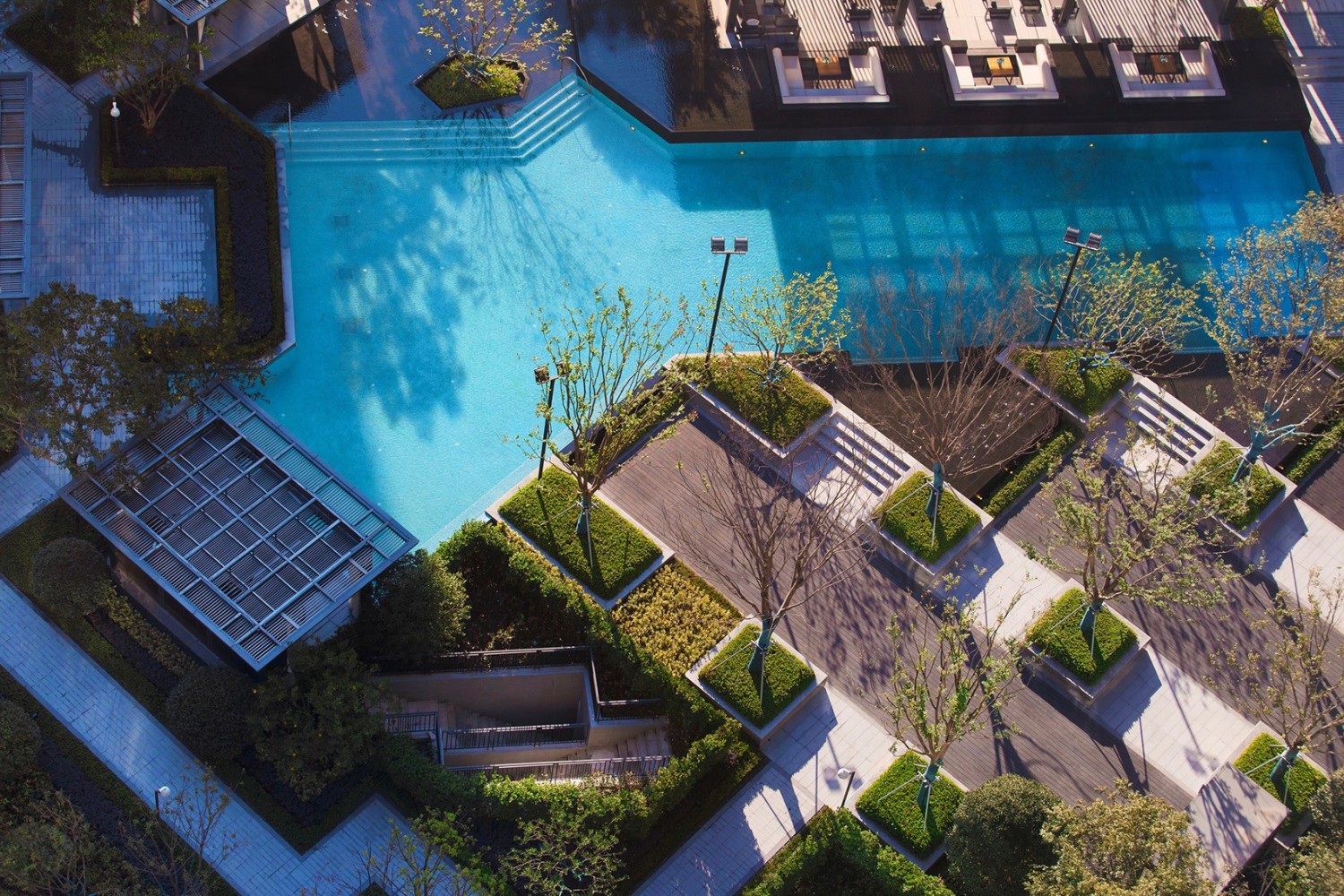 如今高昂的地价,传统式的住宅与花园变得不可企及,取而代之的是在紧凑的土地中立体式的居住现状,人们始终被钢筋混凝土的森林所包裹着,在“上海融创一号院”项目中,设计团队充分地考虑并创造了有限空间中的小气候,为使用者提供良好舒适的居住条件,将绿色重新回归于社区。
