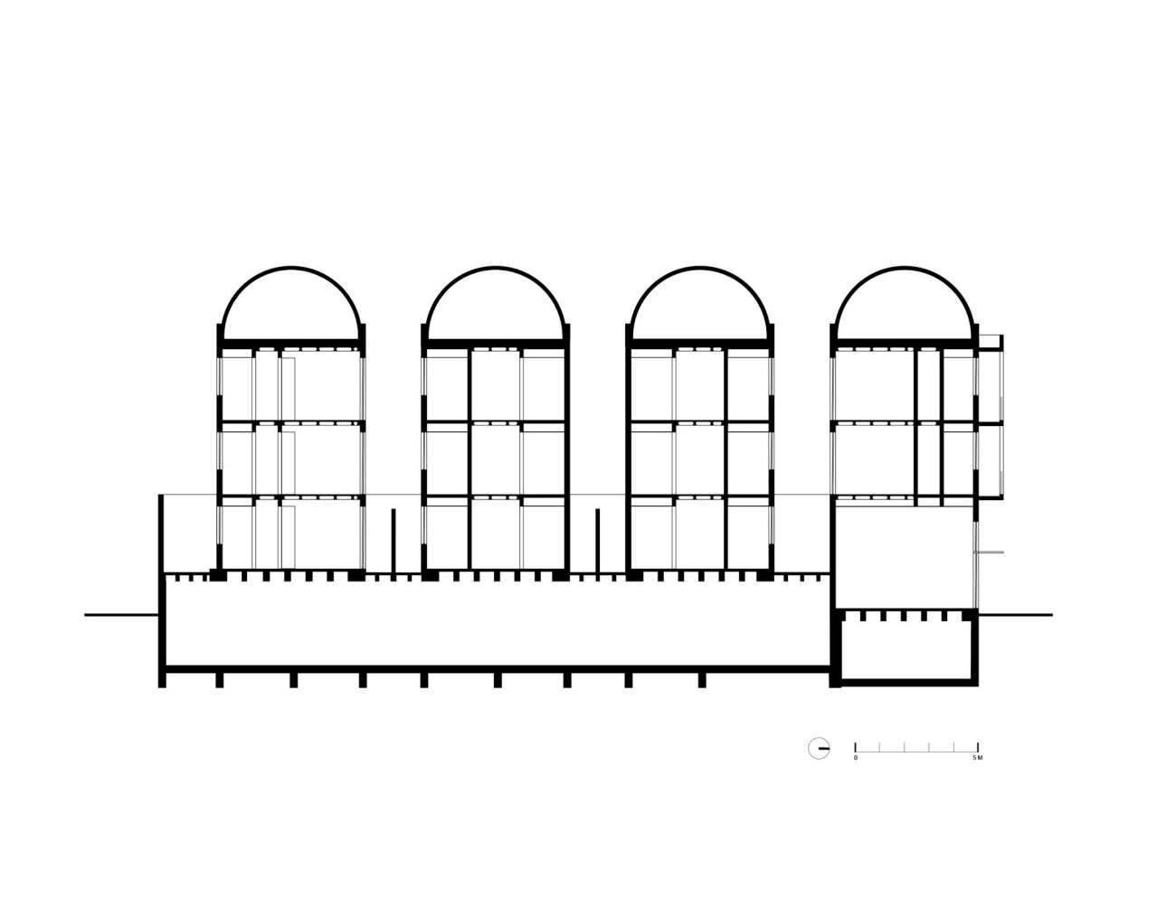 Each tower is crowned with a barrel vault, which not only provides a distinctive character to the design, but also functions as an additional space for the apartments located on the top floor. These vaults create an interesting play of curves on the roof, offering dynamism and character to the complex.
