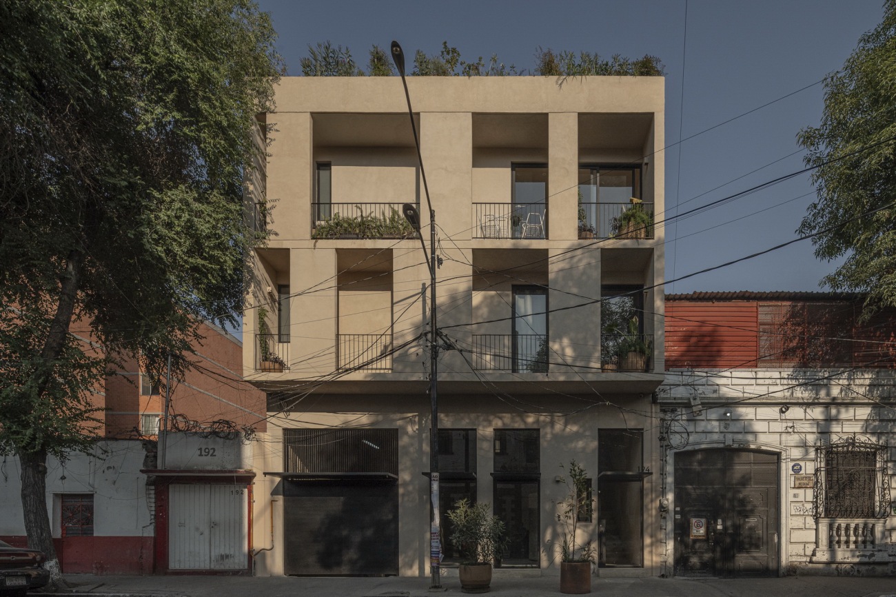 Mariano Azuela 194 is a project that seeks to integrate and align itself with the historical and cultural context of the Santa María la Ribera neighborhood, an area of great heritage wealth. The building, composed of four bays and two circulation cores, is designed to relate harmoniously to its urban surroundings, respecting the scale and architectural characteristics of the place.