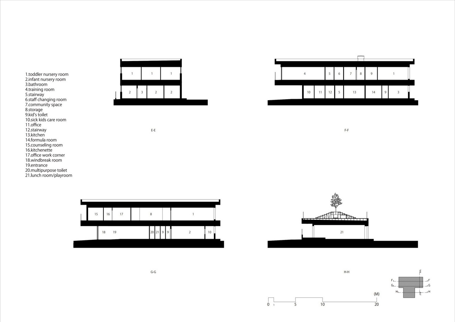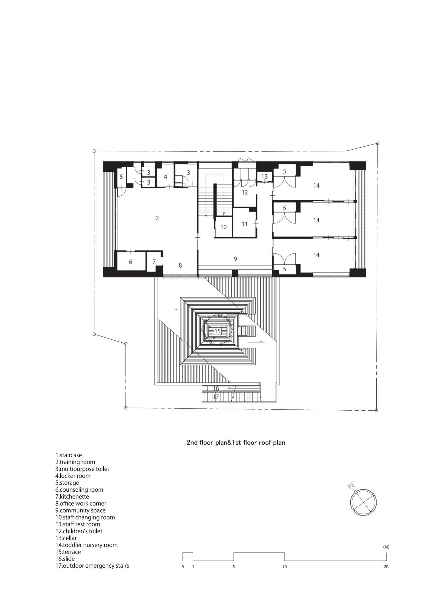 以“了解当地,认可多样性的园舍”为设计理念,福井县敦贺市的新建企业主导型保育园。敦贺市过去作为亚洲,欧洲以及日本各个地区的贸易据点,拥有繁荣的港口。岛屿间的往来,人与货物的混杂勾勒出这片区域。园舍融合了托育园,放学后托管,生病儿童托育三种用途,使用该设施的孩子们从0到18岁年龄范围广阔,残疾儿童和普通儿童都在同一个设施内生活。
