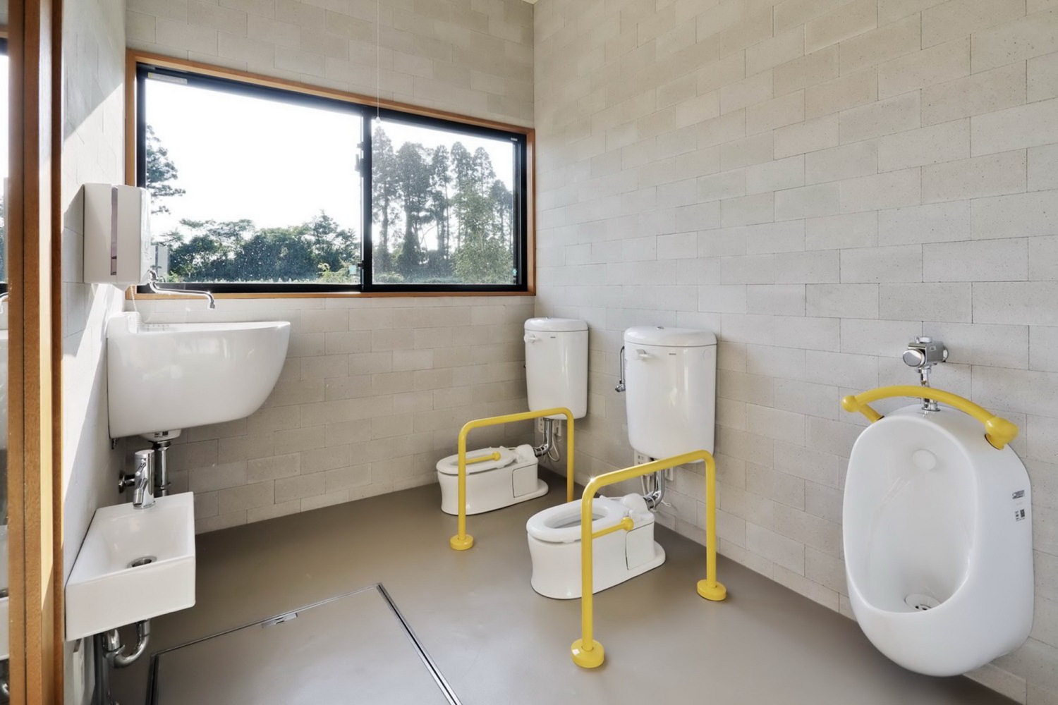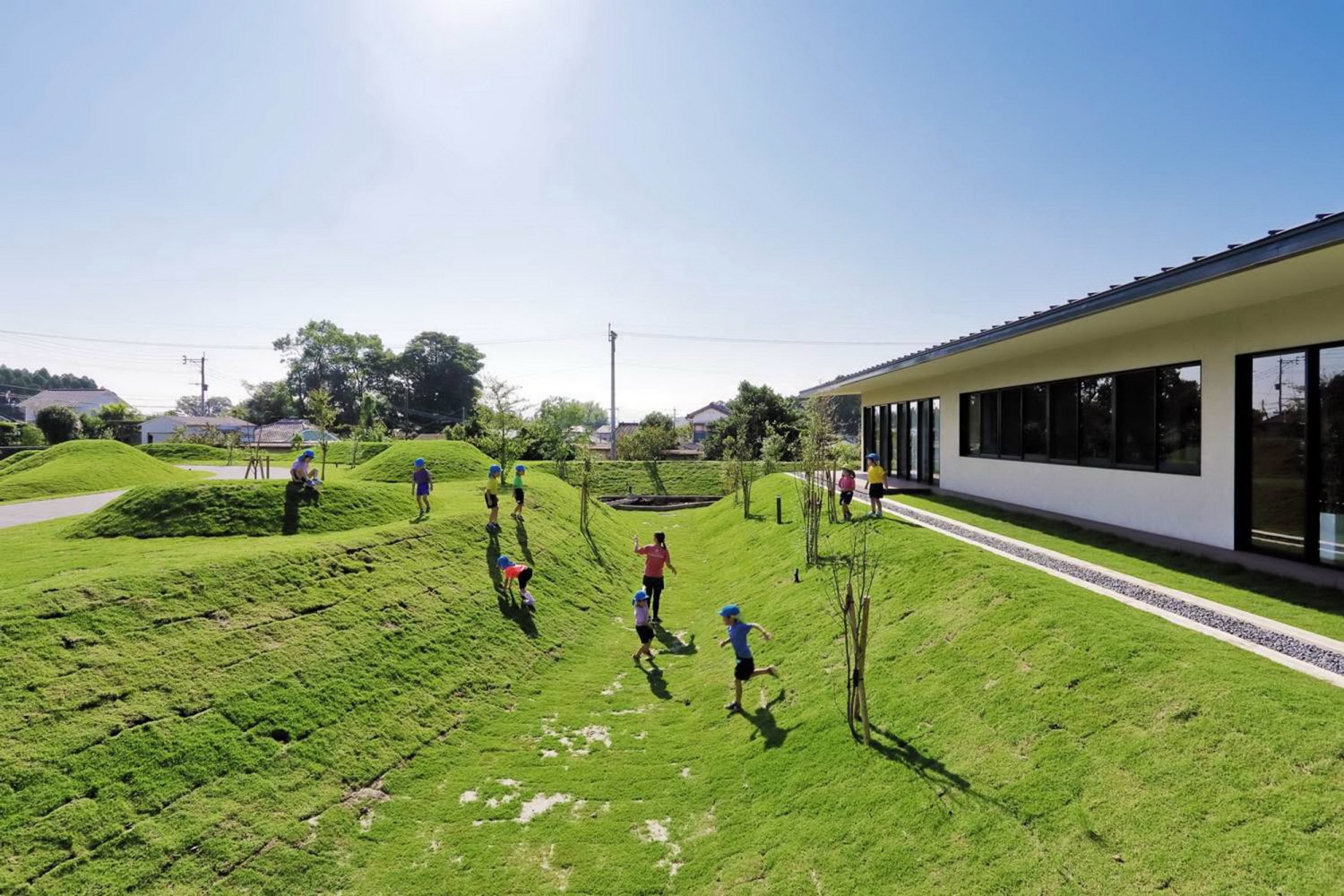 鹿儿岛县鹿屋市新建的可容纳90人的认可托幼一体园。两万多年前火山喷发造成的火山石及火山灰堆积形成广阔的白砂高原。园舍所在地的鹿屋市由此形成。自然资源丰富的白砂高原区域随着时代逐渐发展,根据这样的历史和地域性,将高原凹凸的地形采用到园舍设计中。