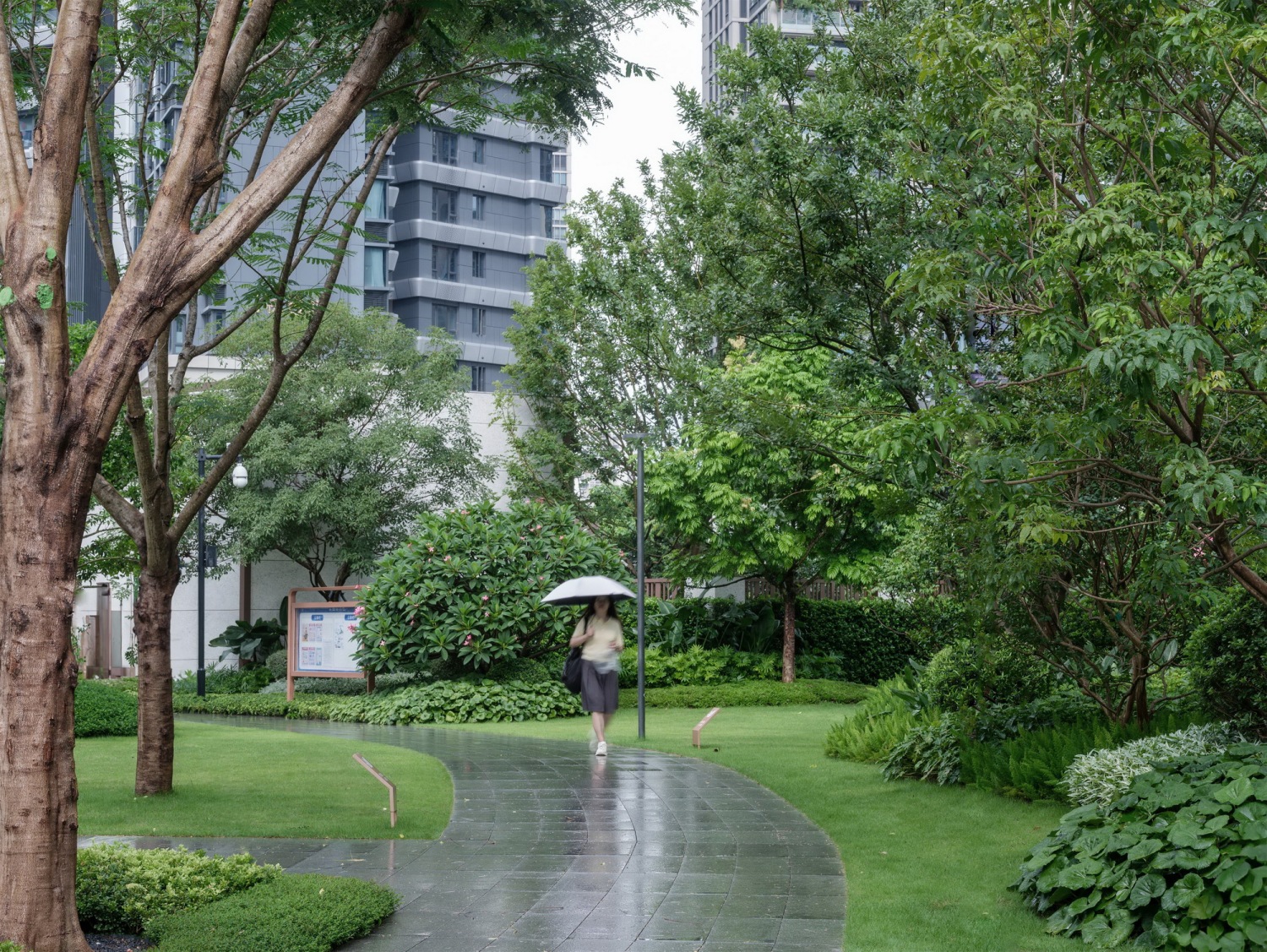 蜿蜒的林下步道巧妙串联各功能区域,引领人们重构视野。景观如诗画般静谧温润,徜徉其中,心灵得以舒展与抚慰。