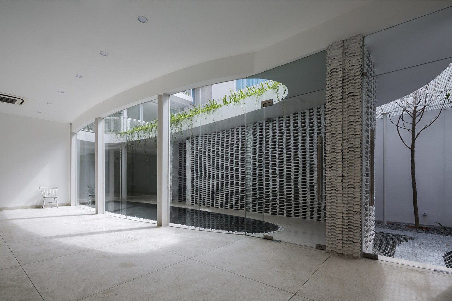 面对城市的混乱局面,这座房子通过空间减法内向,使其与城市环境并置,创造出一个空旷的空间来代表其嘈杂的环境,仅保留了一段内心独白,诗意的寂静,反思,沉思和联系的时刻。空隙是椭圆形的,沿着房屋的水平方向向钢结构的背面雕刻,向后延伸,一直向上延伸到屋顶,形成了上方地板的后退图案。空隙几何的空间抽象得以实现。